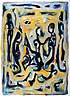 We read everything on pre-Cortez times that we could find. Prescott's history of the conquest of Mexico and Peru; Bernal Diaz del Castillo, who described so quaintly and so graphically the country and the people and the details of the coming of the Spaniards, as one of Cortez' men; more recent writers on the culture of the Aztecs, the Mayans, the Incas. Also general mythology such as the Golden Bough, poetry such as The White Pony, an anthology of Chinese poetry from 1100 B.C. through 1921. All this fired Ary's imagination, and what with improved physical condition, greater peace of mind, and new stimuli to inspire him, Ary's incredibly rich imagination began to reassert itself. Now, he fantasized, he had discovered through excavating among ancient ruins, a "palace of the prince" and everything that poured forth as he sat in the arm-chair in the corner of the verandah was something he carried away from the walls of this ancient palace. So in 1960 he began a series of gouaches, which in creativeness, in spontaneity, in line and form are perhaps the culmination, or at least the beginning of the culmination of his entire career as a non-representational painter. Ary felt that himself, "I am a new Ary" he would say. He even decided that this new Ary should have his name on the paintings rather than the old Stillman whose depression he had fought off. So one will find that practically all of the gouaches and many of the later canvases bear the name "Ary." Later on, after we left Mexico, he drifted back into signing "Stillman" again.